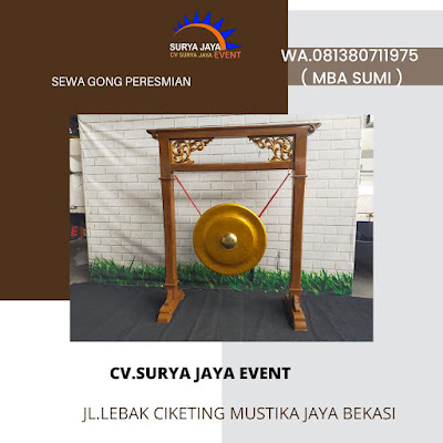 CV.SURYA JAYA EVENT Rental Gong Peresmian Gratis Ongkir Depok siap kirim dan setting.Untuk tiang gantungan gong peresmian terbuat dari kayu jati asli yang kualitasnya bagus dan diukir dengan sangat rapi oleh pengarjin ukir asal kota ukir Jepara yang terkenal dengan garapan rapi sehingga gong peresmian terlihat mewah,elegant dan berkelas.Tentunya gong peresmian yang kami rentalkan ini sangat kokoh,kuat dan dalam kondisi bagus,bersih juga terawat dengan sangat baik.